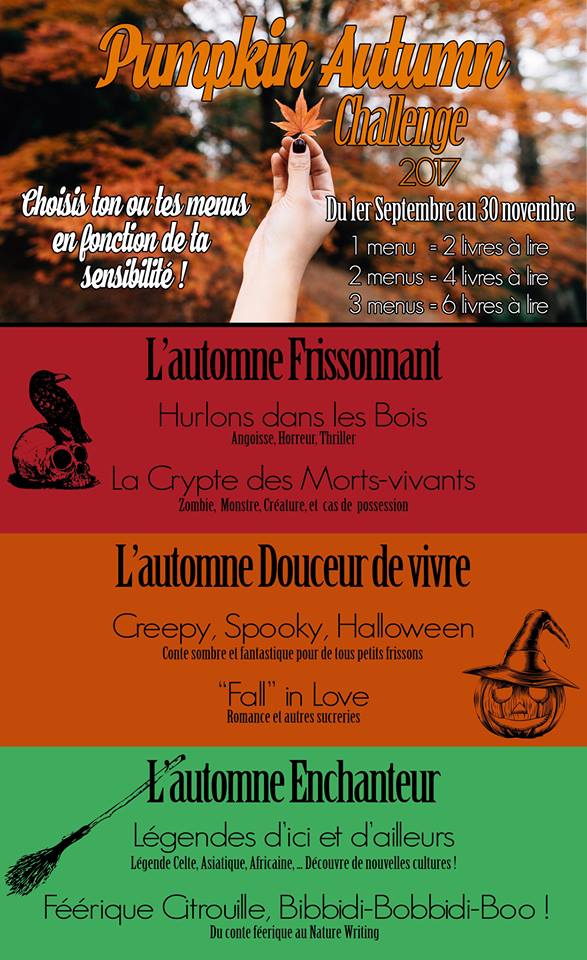 Et comme j'ai pris l'habitude de suivre avec intérêt un certain nombre de booktubeuses (toutes des viles tentatrices qui ont fait doublé ma pile à lire !). Parmi mes préférées, il y a Margaud Liseuse (qui jusqu'à présent à des goûts très proches des miens), Bulledop, Lemon June, Les lectures de Nine, Pinupapple & Books, Bazar de la Littérature (parmi beaucoup d'autres... ) et Le Terrier de Guimause ! Qui, en l'occurence, est à l'origine de ce challenge particulièrement tentant sur ma saison préféré et mes thématiques favorites !